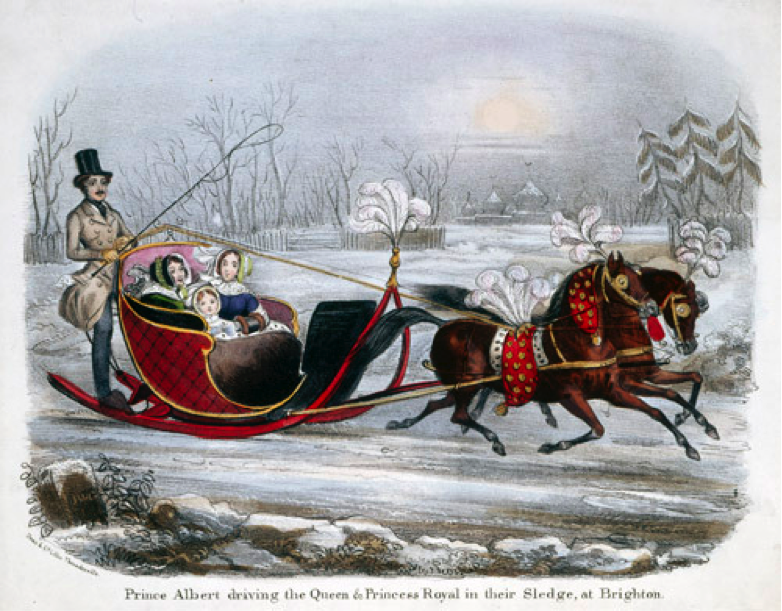 Prince Albert driving the Victoria & the Princess Royal on their Sledge at Brighton (date unknown but circa 1845)