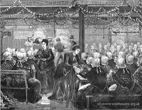 The introduction of the New Poor Law in 1834 ended the tradition of the poor receiving extra food at Christmas. Poor relief was organised around the principles of ‘indoor relief’ (one must enter the workhouse to receive aid); ‘less eligibility’ (conditions inside the workhouse had to be worse than those outside); and the Malthusian precept that the sexes, including married couples, should be segregated. This was hardly a recipe for Christmas cheer, and the Poor Law Commissioners decreed that no extra food was to be allowed on Christmas Day. Over the years the rule against extra food was eased, provided it came from charitable donations, but the segregation of the sexes remained in force.