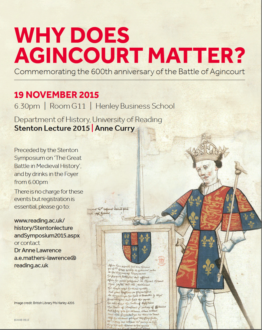 This year Stenton Lecture will be given by Professor Anne Curry and will commemorate the 600th Anniversary of the Battle of Agincourt.