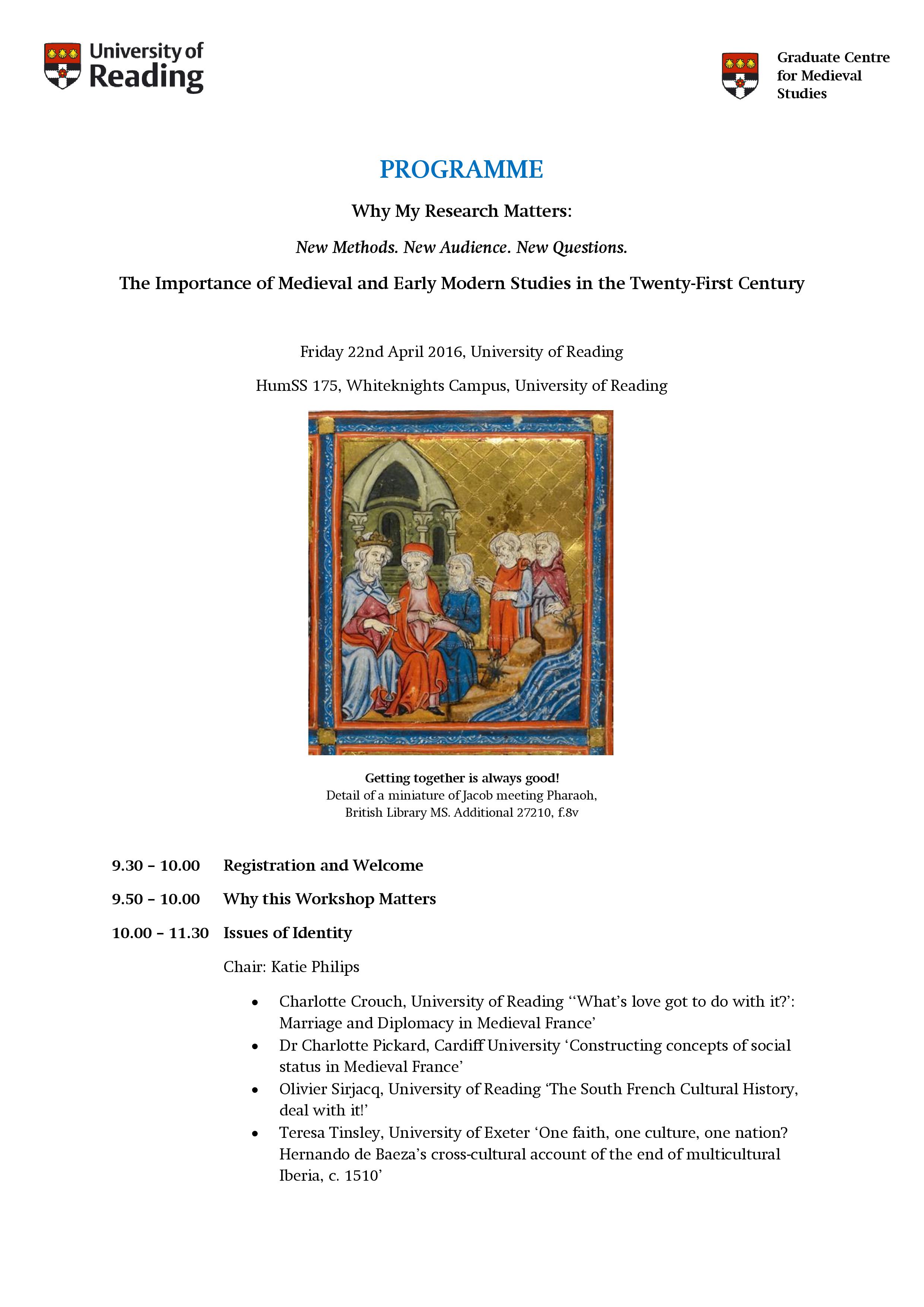 Why My Research Matters, 22nd April 2016 – PROGRAMME-p1