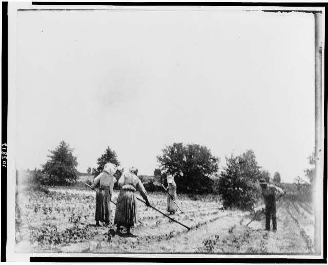 Three women and one man hoeing in field, (1899), Library of Congress, Prints and Photographs Division [https://www.loc.gov/pictures/item/91785649/]