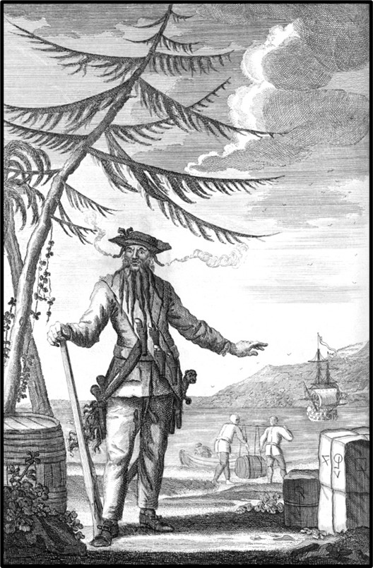The Pirate Republic took the established democratic ways of a privateering vessel and moulded the rules so that they could be adapted on land. Consequently, the pirates elected their own leaders, and several so-called ‘governors’ if one could call them such, were ‘sworn in’ to manage the republic’s affairs. Among these men were Benjamin Hornigold and Henry Jennings, and much later the cutthroat pirate ringleader Charles Vane. One of these individuals, Thomas Barrows, after declaring himself ‘Governor of Providence’ reportedly claimed that he awaited several hundred Jamaican sailors to join the pirate fraternity, so that they may wage war against the empires of Spain and France, while keeping out of England’s way. One of these ‘governors’ would not only become the world’s most infamous pirate, but also America’s first bogeyman. His name was Captain Edward Thatch, now known the world over as Blackbeard.