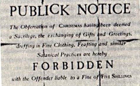 A public notice in Boston in 1659 describing dressing in fine clothing, feasting, and exchanging presents to be ‘sacrilege’ and ‘satanical’.