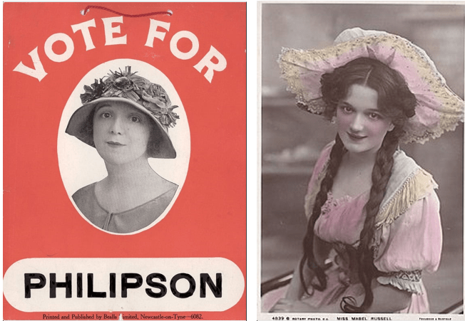 Before being elected to parliament Philipson had a successful career as a Gaiety Girl and comedy actress before moving into serious drama in 1913. She married her second husband, Hilton Philipson in 1917 and in 1922 he was elected as National Liberal MP for Berwick upon Tweed. However, he was unseated due to concerns about financial irregularities during his election campaign and was barred from standing again for 7 years. Philipson took his place though as a Conservative party candidate. Her theatricality was a vote winner and served her well on the hustings though her background did raise some eyebrows. She was elected in 1923 by a larger majority than her husband had been. Although Astor, Wintringham and now Philipson had been elected to their husbands’ seats, Philipson in particular ‘was seen as somewhat lightweight and one of the less active women MPs’.