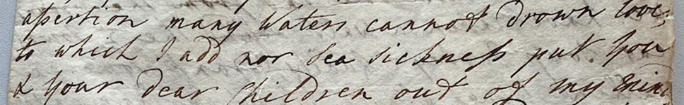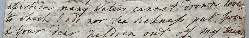 ‘many waters cannot drown love, to which I add nor sea sickness put you & your dear children out of my mind’