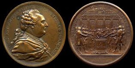 Image 1: A medal of King Louis XVI hailed the restorer of liberties; on the reverse, depiction of the night of August 4. when deputies of the nobility and clergy solemnly surrendered their privileges with the purpose of appeasing the revolts that spread across the countryside in the aftermath of the storming of the Bastille.