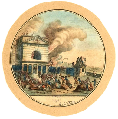 Image 2: Storming of one of the Parisian octrois (tolls) built by the architect Ledoux.