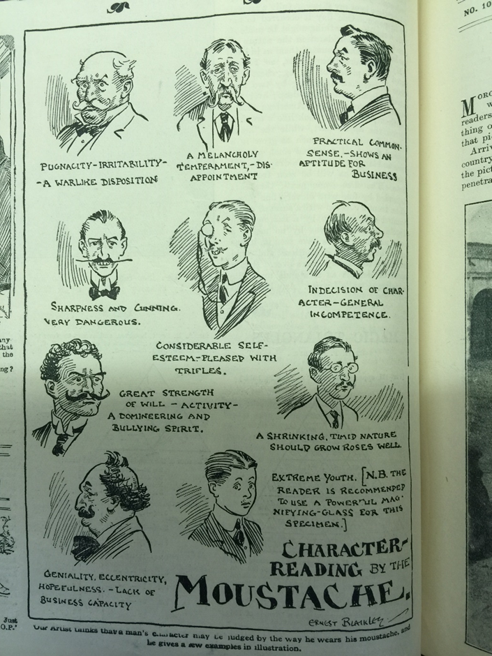 A revival of the beard was popularised by the military and explorers who were unable to shave regularly. As such, the beard became a sign of manliness, adventure and virility. However, care needed to be taken the facial hair was of the right type – male facial hair again, indicated character and ‘Character Reading by the Moustache’ made it into Boys Own Annuals. Avoid a thin, pencil moustache as it indicates ‘sharpness and cunning, very dangerous’ while you may more safely consider a tidy, medium moustache following the upper lip which indicates ‘practical common sense’ and ‘shows an aptitude for business’.