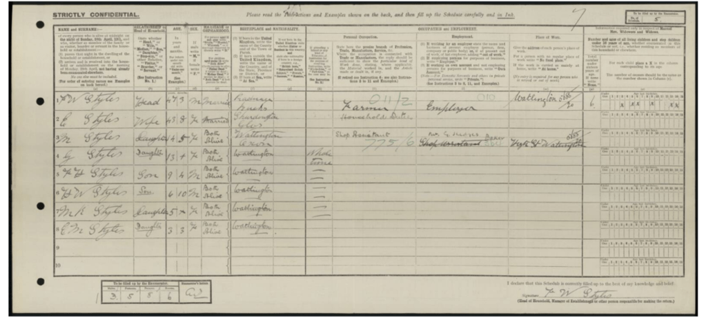 Madeline was born in Henley, Oxfordshire to Frederick William Styles and Ethel Organ. Madeline’s father, Frederick William Styles was a farmer who owned and lived on a Farm in Watlington, Oxfordshire. Census records show that a servant named Ambrose Lee also lived at the farm and worked as a ‘Cattle Man’. Madeline first appears in the 1911 census, when she was aged 4 and lived with her father and siblings, Kathleen, Gwendoline, Frederick, Harold, Elise May, and Mary. Growing up, Madeline likely helped with work on the family farm, though was later employed away from the family home: in the 1921 census, when Madeline was aged 14, she was recorded as a ‘Shop Assistant’ working for Mr G. Shedger Baker.